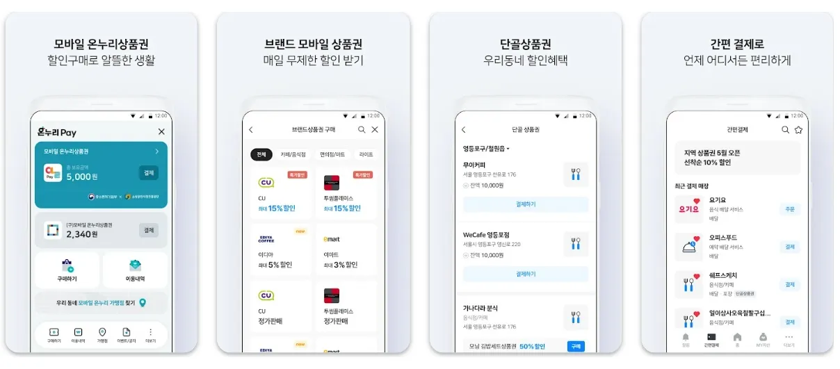 - 온누리페이 앱과 비플페이 앱에서 모바일 온누리 상품권을 구입하여 가맹점에서 QR코드를 촬영한 뒤 금액을 입력하여 결제하는 방식입니다.